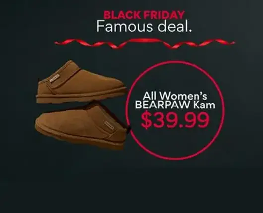 Hurry! Shop in store and get all women's BEARPAW Kam for $39.99.